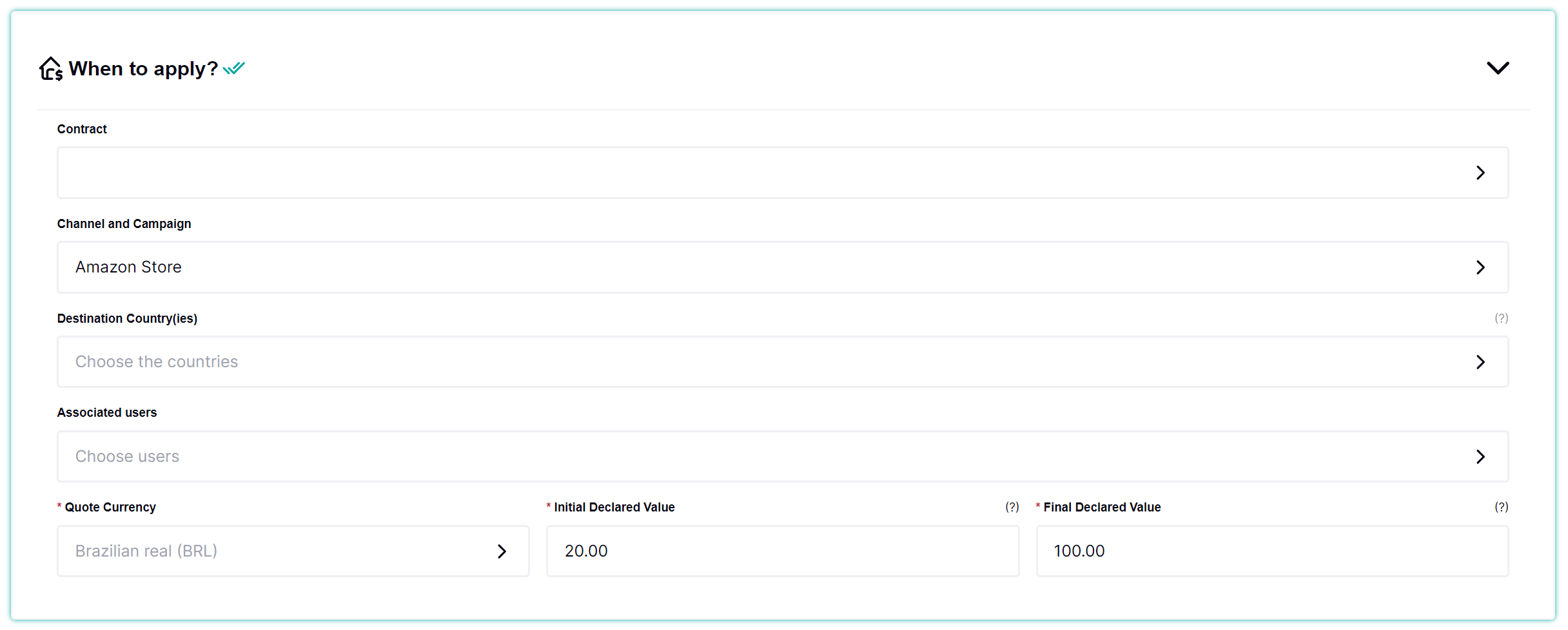 In this section, under “Contract”, if the rule pertains to freight, for example, it might be that the benefit or discount only applies if the shipment is made with a specific carrier, such as UPS or DHL. It's not mandatory to fill in this field.